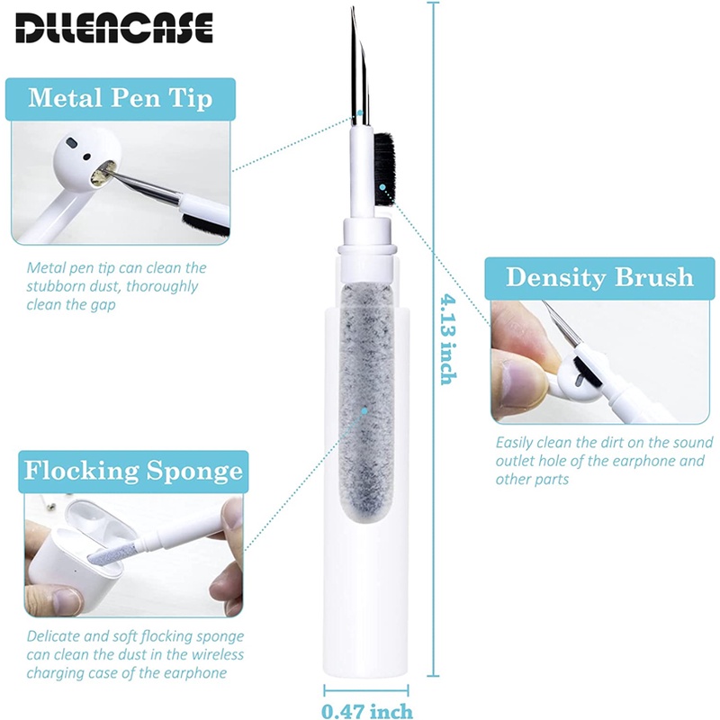 The Bluetooth earbuds cleaning pen combines three functions in one portable gadget with each part playing its role. Switch the head to use a flocking sponge, high-density brush, or metal tip, dealing with different cleaning tasks.